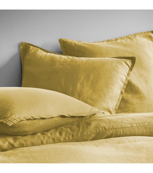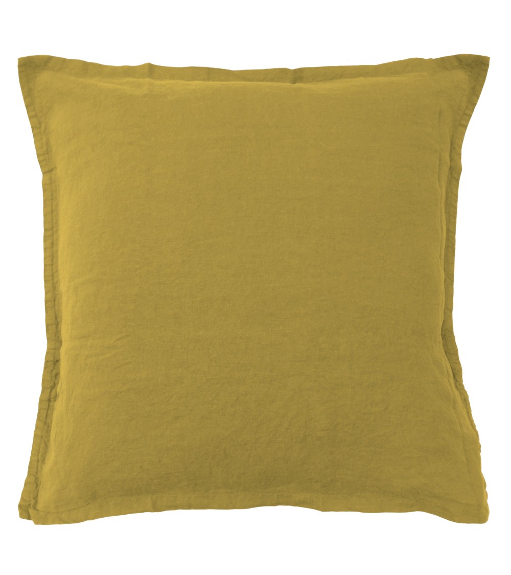 Set de 2 taies doreiller unies en lin lavé Safran 65x65cm