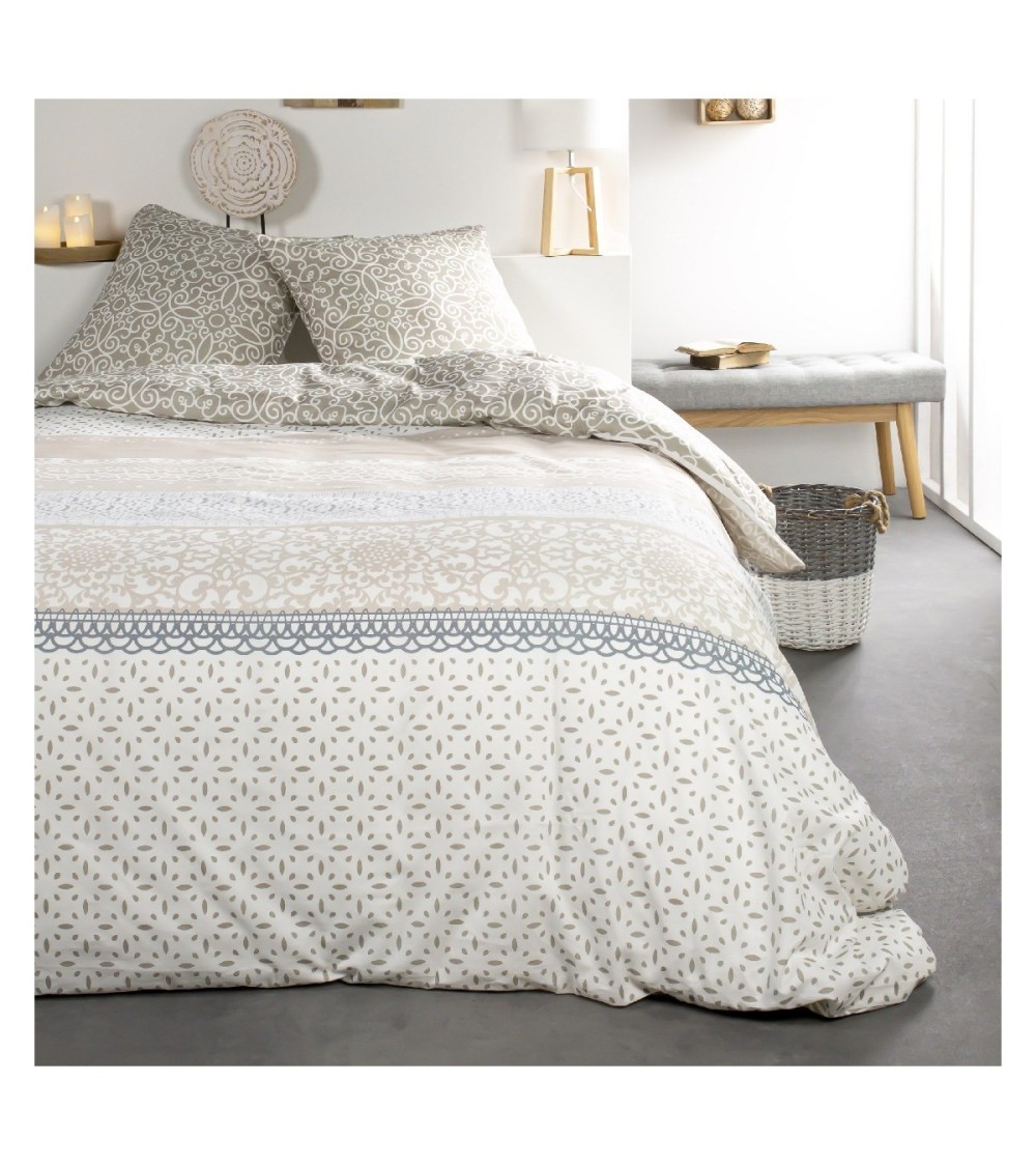 Parure de lit 2 personnes imprimé floral en Coton Beige 220x240 cm