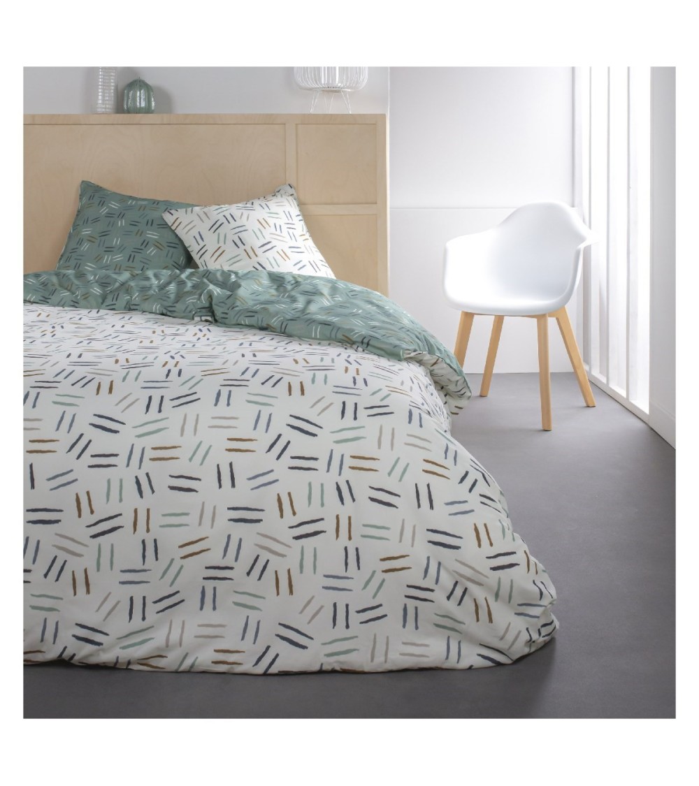 Parure de lit 2 personnes imprimé Rayure en Coton Blanc 220x240 cm