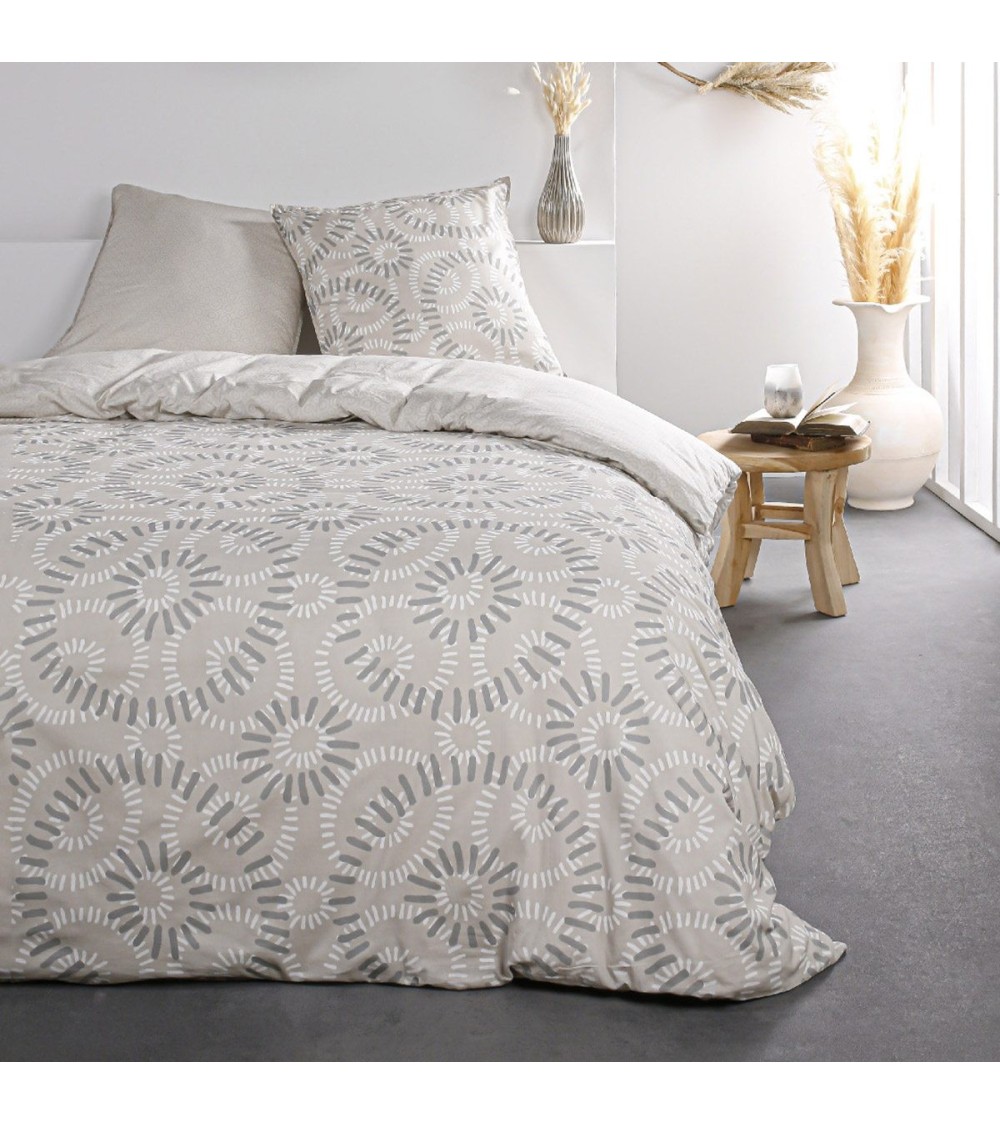 Parure de lit 2 personnes imprimé en Coton Beige 220x240 cm