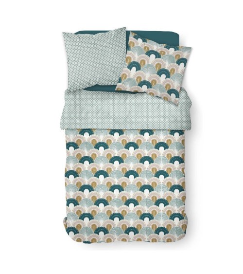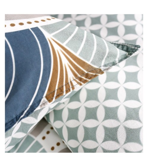 Parure de lit 2 personnes imprimé en Coton Bleu 220x240 cm