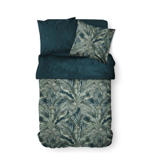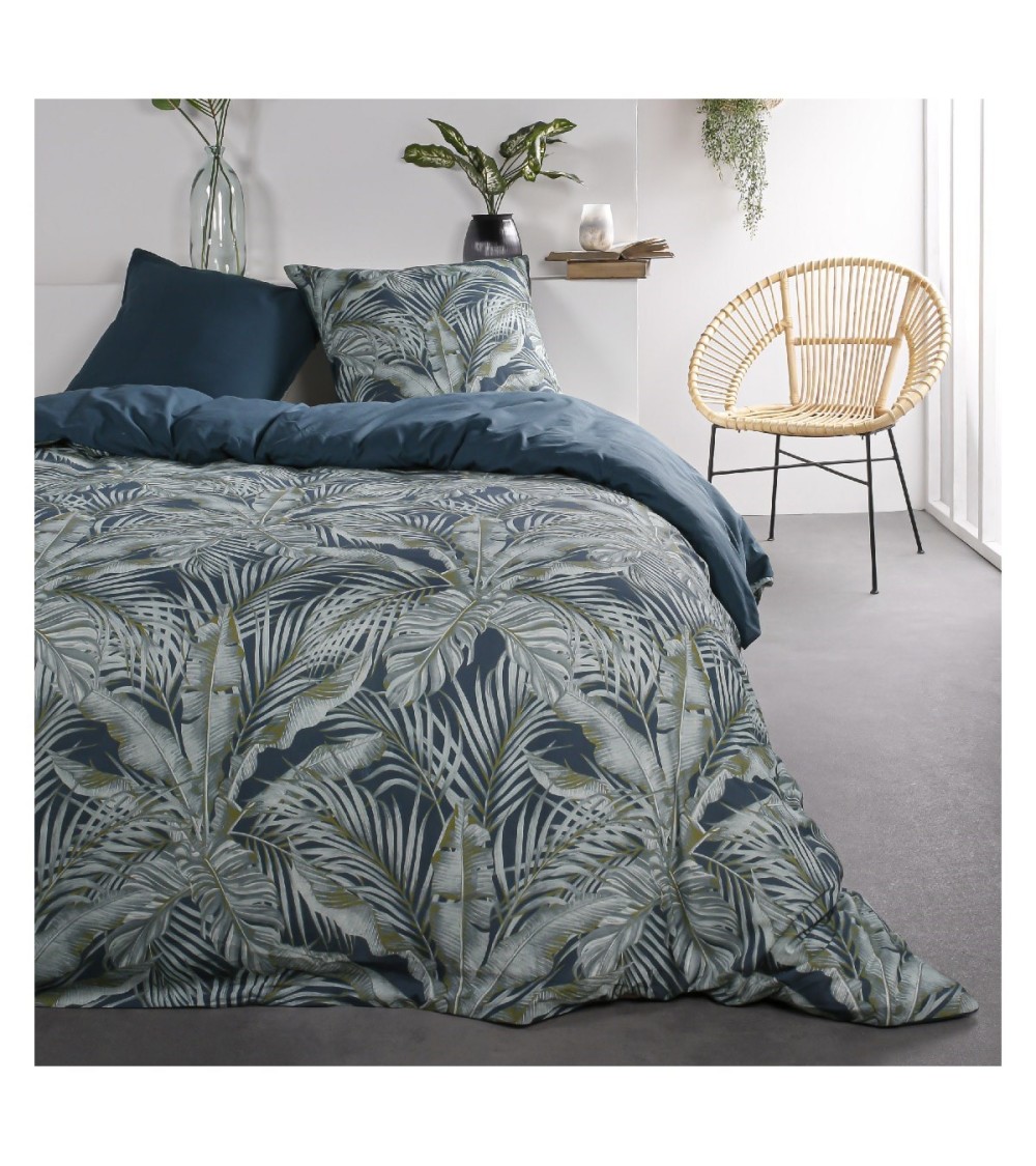 Parure de lit 2 personnes imprimé jungle en Coton Bleu 220x240 cm