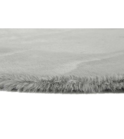 Tapis effet peau de lapin doux tufté gris salon, chambre rond D200