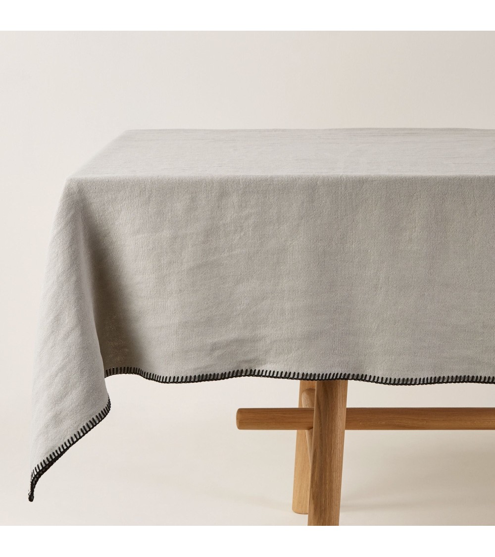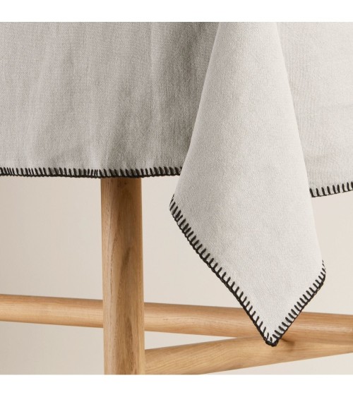 Nappe rectangulaire 140x320 cm Ficelle et feston noir en Lin