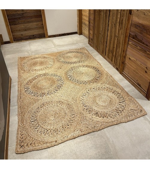 Notre tapis rectangulaire JERICO tréssé à la main, propose un design trés authentique et cosy pour la maison. Parfait pour apporter une note naturelle, de part sa conception 100% jute, il est totalement biodégradable et recyclable, est très respectueuse de l'environement. C'est un indispensable autant en hiver qu' en été. En hiver, il ajoute la touche cosy et chaleureuse, et sur le restant de l'année il sublime notre intérieur. Comme toutes les pièces tréssées à la main, il peut y avoir quelques imperfections ce qui n'enlève rien à leur charme unique. Tapis rectangulaire 100% jute naturelle tréssé à la main Matière écologique, biodégradable et recyclable. Dimensions : 150x220cm Poids : 14.190 kgs Nettoyer à l'aide d'un chiffon sec
