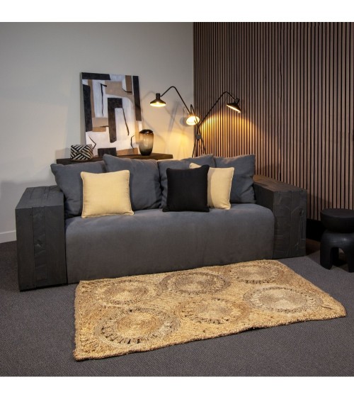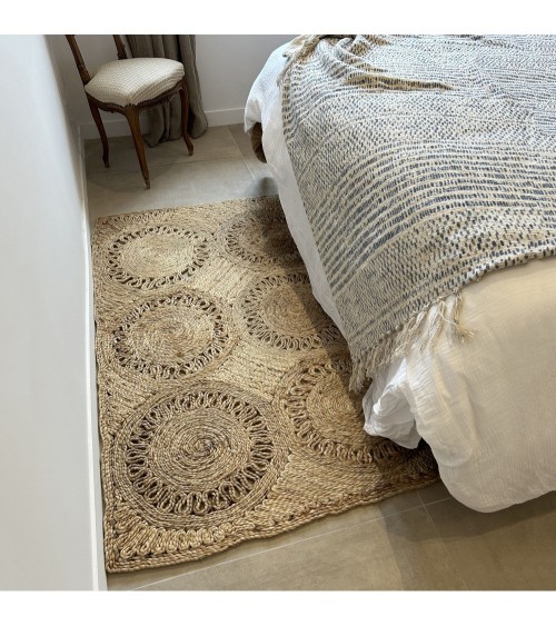 Le tapis rectangulaire JERICO tréssé à la main, propose un design trés authentique et cosy pour la maison. Parfait pour apporter une note naturelle, de part sa conception 100% jute, il est totalement biodégradable et recyclable, est très respectueuse de l'environement. C'est un indispensable autant en hiver qu' en été. En hiver, il ajoute la touche cosy et chaleureuse, et sur le restant de l'année il sublime notre intérieur. Comme toutes les pièces tréssées à la main, il peut y avoir quelques imperfections ce qui n'enlève rien à leur charme unique. Tapis rectangulaire 100% jute naturelle tressé à la main matière écologique,biodégradable et recyclable Dimensions : 90x150cm poids 6.160 kgs Nettoyer à l'aide d'un chiffon sec