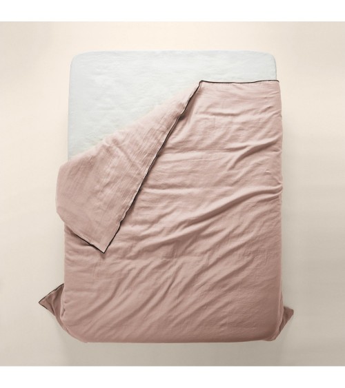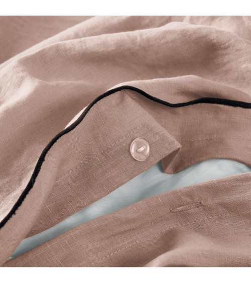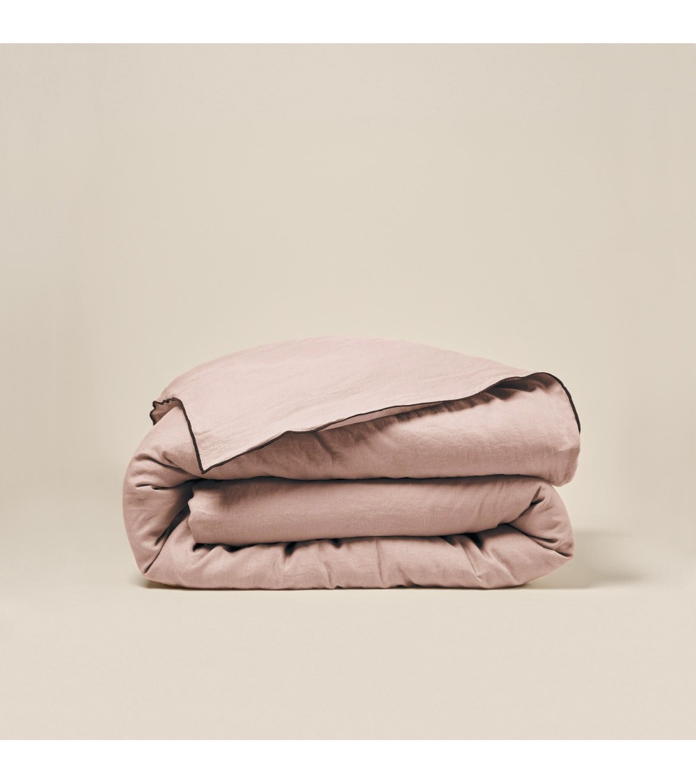 Housse de couette 260x240 cm Rose poudré et bourdon noir en Lin