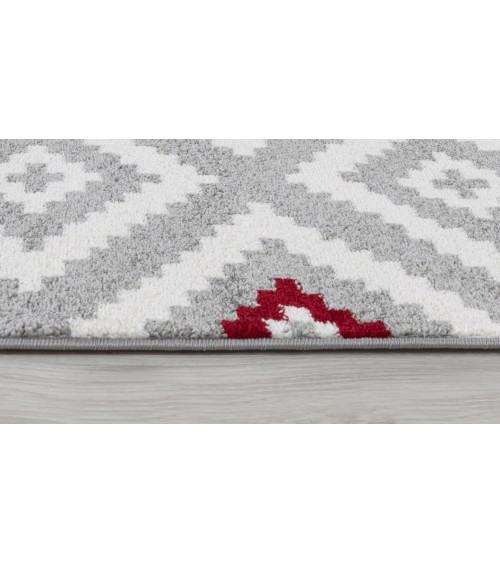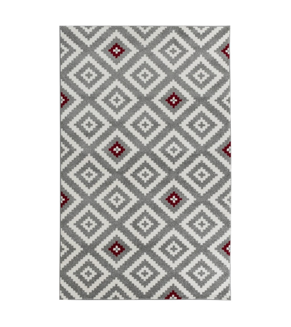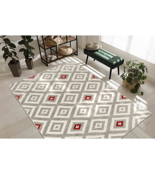 Idéal pour diffuser une atmosphère moderne dans votre intérieur, le tapis Tavla en laine artificielle à motifs rouge et gris vous séduira par son design original. Gorgé d'inspirations scandinaves, ce tapis gris à motifs géométriques structurera votre pièce de vie avec style. Vous profiterez pleinement de sa texture moelleuse en glissant ce tapis graphique aux pieds de votre canapé.Nos tapis en laine artificielle sont certifiés OEKO-TEX 100. Cette certification signifie que le tapis est exempt de produits chimiques dangereux.Le polypropylène est une fibre synthétique non nocive pour l'environnement. Son fil torsadé donne un éclat vibrant aux couleurs.Elle a une résistance élevée à l'usure et résiste très bien à la chaleur. Cette matière est antistatique, elle ne perd pas ses fibres et elle n'attire pas la poussière, ce qui veut dire qu'elle est facile à nettoyer.