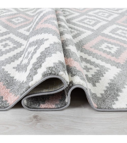 Idéal pour diffuser une atmosphère moderne dans votre intérieur, le tapis Tavla en laine artificielle à motifs rose et gris vous séduira par son design original. Gorgé d'inspirations scandinaves, ce tapis gris à motifs géométriques structurera votre pièce de vie avec style. Vous profiterez pleinement de sa texture moelleuse en glissant ce tapis graphique aux pieds de votre canapé.Nos tapis en laine artificielle sont certifiés OEKO-TEX 100. Cette certification signifie que le tapis est exempt de produits chimiques dangereux.Le polypropylène est une fibre synthétique non nocive pour l'environnement. Son fils torsadé donne un éclat vibrant aux couleurs.Elle a une résistance élevée à l'usure et résiste très bien à la chaleur. Cette matière est antistatique, elle ne perd pas ses fibres et elle n'attire pas la poussière, ce qui veut dire qu'elle est facile à nettoyer.