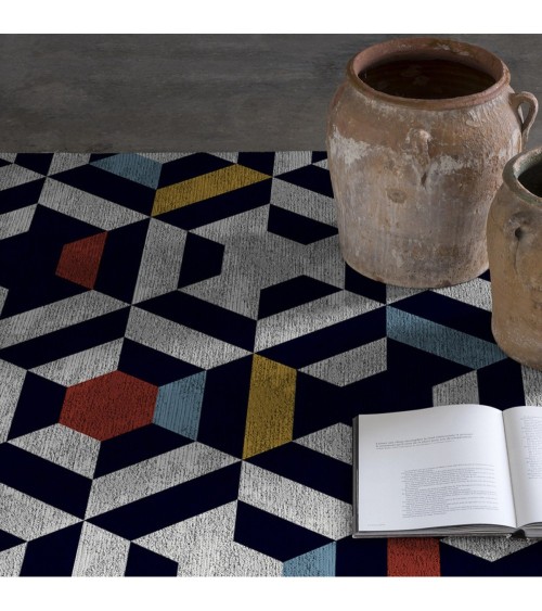 Tapis décoratif en coton imprimé motifs graphiques 80x150 cm