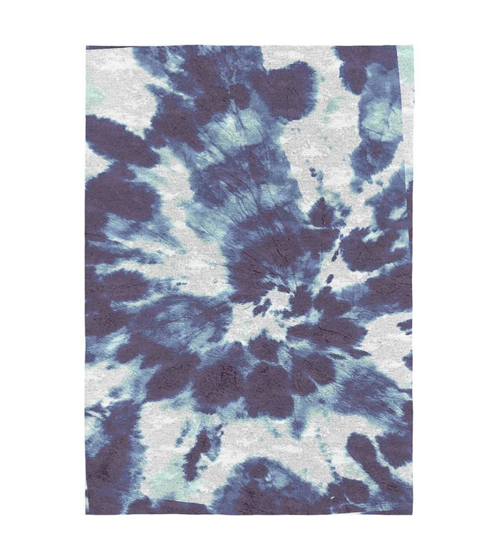 Tapis décoratif en coton impression digital tie dye bleu 80x150 cm