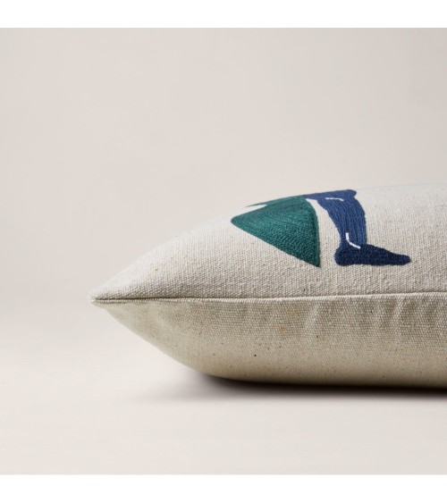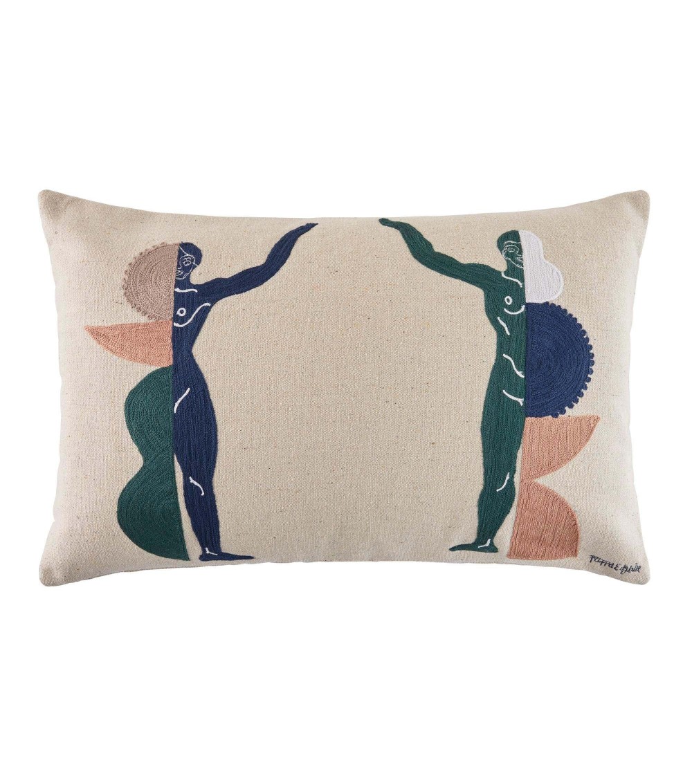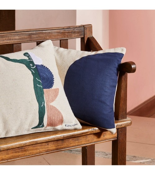 Les housses de coussin Pilar revisitent le mythe dAtlas avec ces figures colossales qui portent un globe à bout de bras, avec force et tranquillité. Brodées au point de chaînette, les détails ressortent avec délicatesse. On aime les tonalités terreuses et lunaires, les fils denses et doux en coton.