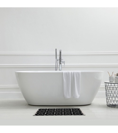 Conçu entièrement en coton, ce tapis de bain fantaisie 50x80cm très absorbant apportera une touche décoration dans votre salle de bain. Ce tapis est lavable à 30°C en machine. Ne pas le repasser ni le sécher en machine. CARACTERISTIQUES PRODUIT : Dimensions : 50x80cmMatière : Coton tisséLavable en machine à 30°CTapis réversible Confectionné en coton, ce tapis de bain vous apportera un toucher d'une douceur incomparable. Si vous cherchez un tapis de bain à la fois pratique, fonctionnel et esthétique, alors le tapis de bain noir Nouri est le tapis qu'il vous faut ! Il allie à la fois confort et esthétisme. Son design unique composé de triangles vous permet également de vous en servir comme tapis de décoration.