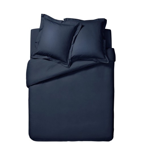 Housse de couette unie en percale de coton bleu 240x220