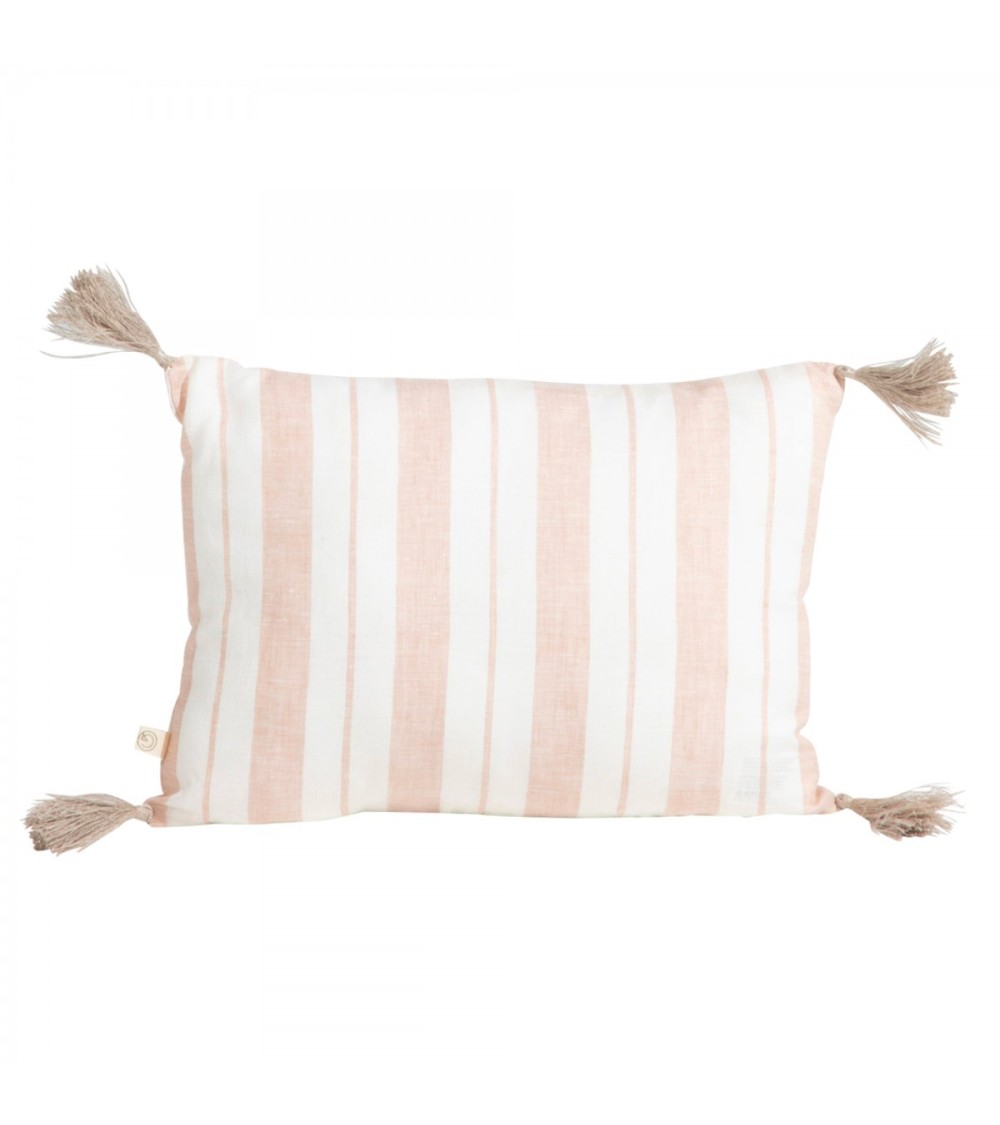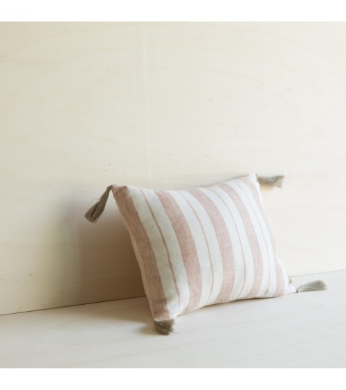 Housse de coussin en lin lavé rayé rose/crème 25x35