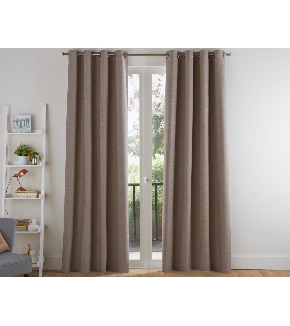 Habillez et protégez vos fenêtres avec un beau rideau à l'unité monté sur illet en coton marron 135x260. 100% opaque et protection thermique. C'est la promesse de ce rideau occultant thermique uni. Il protège votre pièce de la lumière, du vent, du froid de l'hiver et de la chaleur de l'été. Le rideau occultant thermique prêt-à-poser assure une isolation idéale : 100% opaque à la lumière, il est doublé d'une enduction acrylique triple couche (uni blanc côté fenêtre). Côté déco, un beau tissu aspect chambray qualité lourde 340 g/m2 en 135x260 cm, au tombé impeccable. Le rideau prêt-à-poser est monté sur illets coloris canon de fusil.