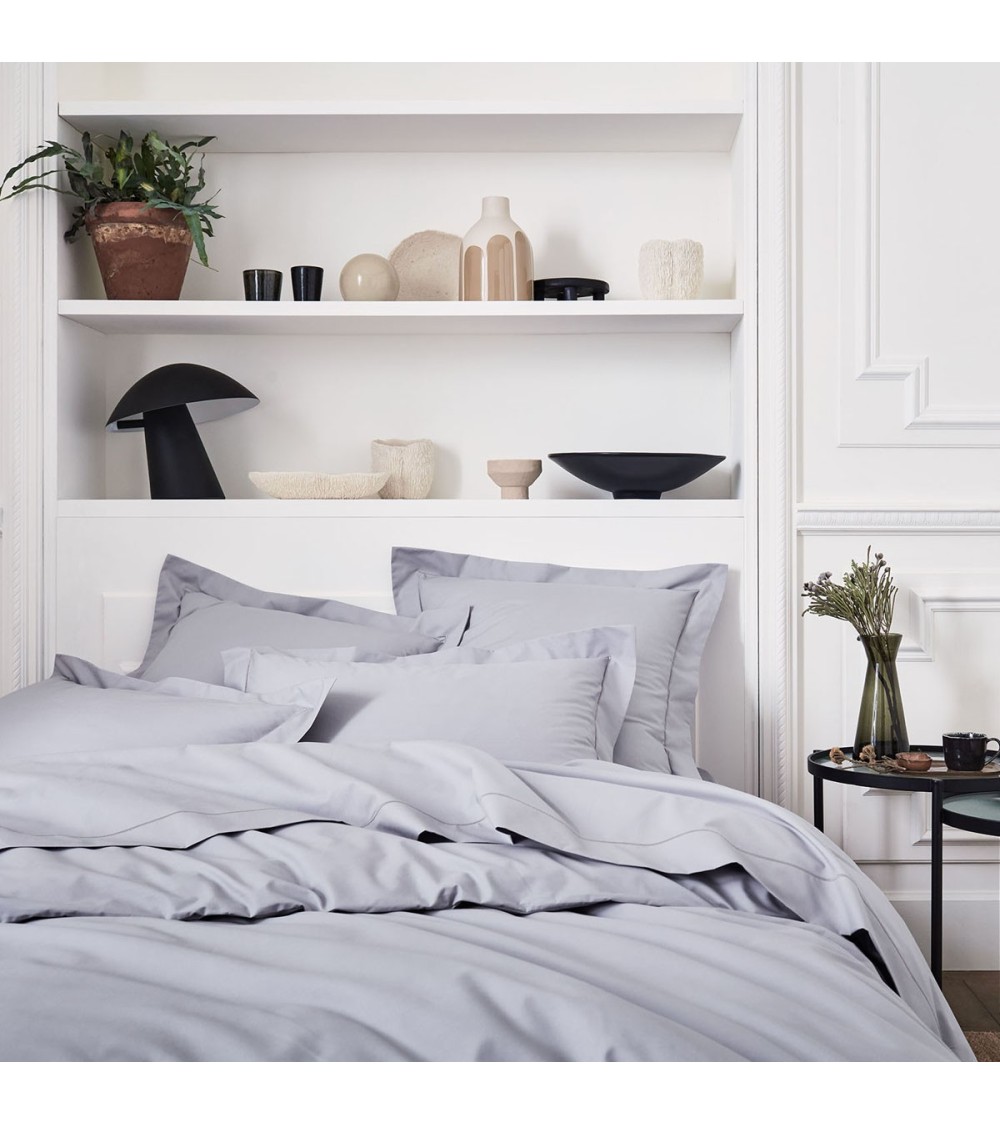 La housse de couette unie est soulignée d'un point de bourdon serré ton sur ton. La finition bouteille permet de rabattre le bout de la housse de couette en dessous du matelas afin d'en assurer son bon maintien.
