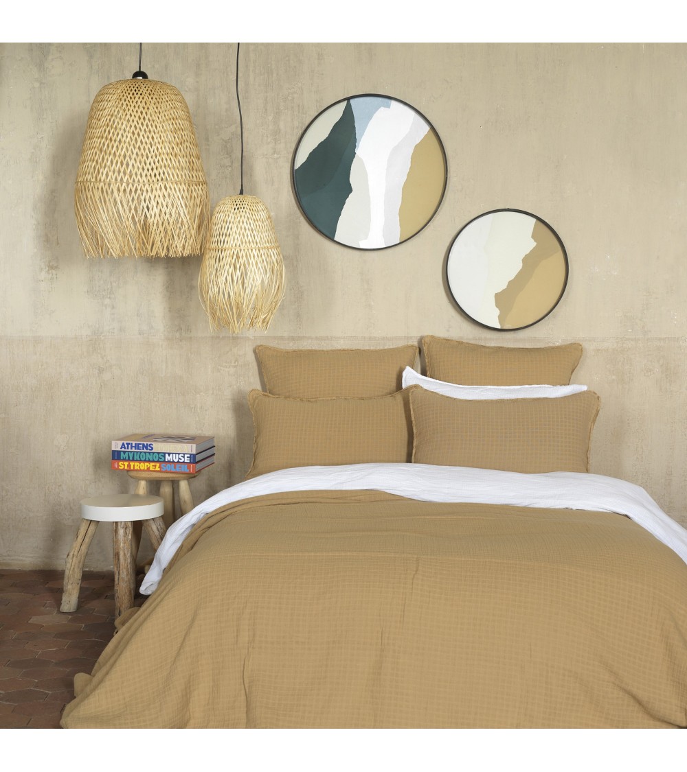 Ce dessus de lit Minorque en gaze de coton camel avec son quadrillé viendra illuminer votre chambre, en plus de vous apportez confort et douceur.