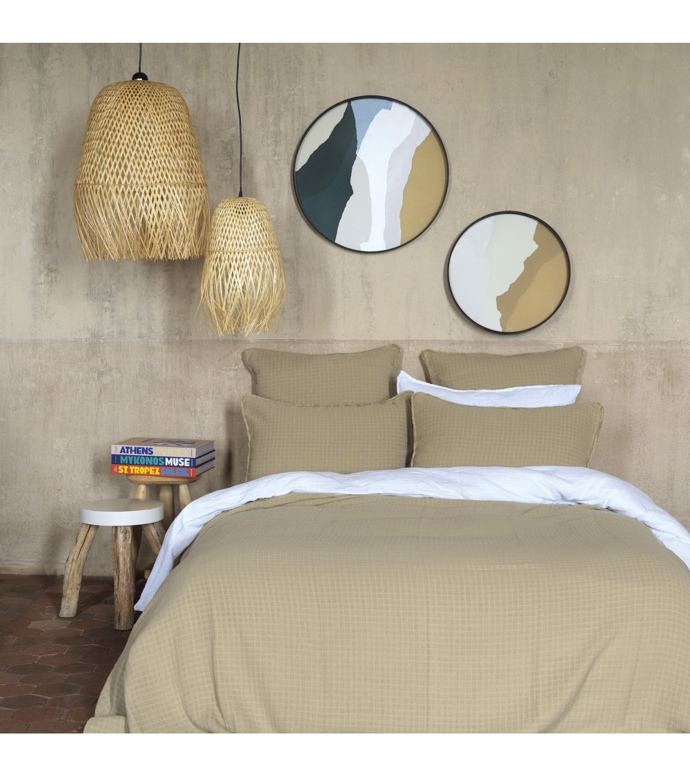 Ce dessus de lit Minorque en gaze de coton mastic avec son quadrillé viendra illuminer votre chambre, en plus de vous apportez confort et douceur.