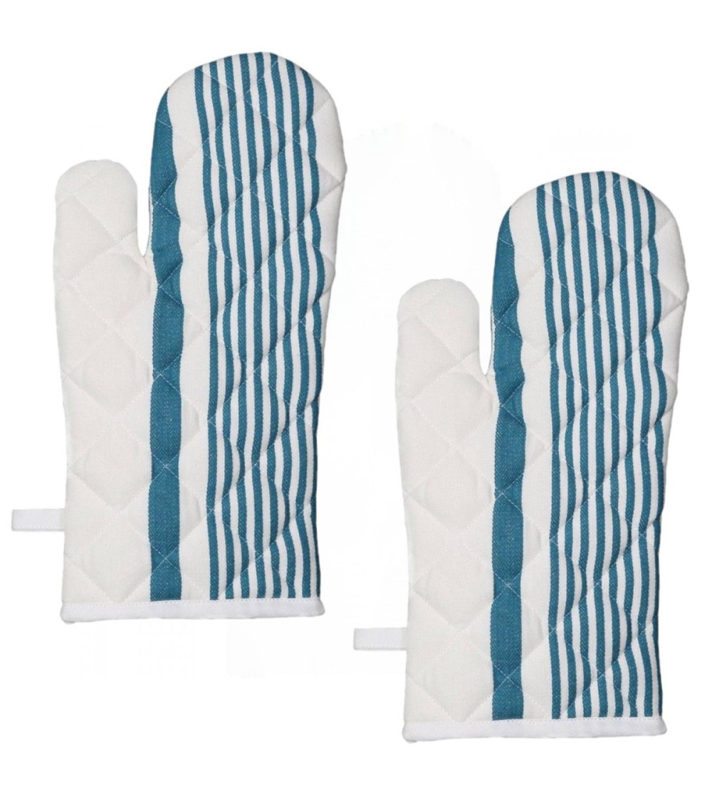 Conçu pour tenir les plats chauds cuisinés par vos soins, le gant de cuisine SAUDA vous protège efficacement les températures les plus chaudes. En lot de 2, le gant matelassé est composé 100% coton et est garnit d'ouate. Ses déclinaisons de couleurs (blanc/petrol, blanc/glacier, ficelle, petrol, et glacier) et sa démarcation faite de rayures en font de lui un objet rajoutant du peps dans votre cuisine. Le gant à four est en dimensions standard de 17x33cm.