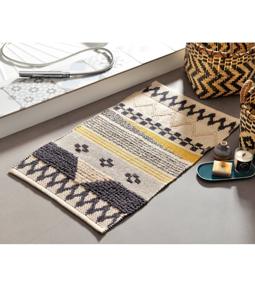 Protégez les sols de la salle de bain avec ce tapis de bain beige 50x80 en coton. Inspiration artisanale : une note d'originalité dans la déco ! Le tapis de bain motif ethnique avec son motif géométrique inspiré de l'artisanat style indien offre un bonne épaisseur et un beau relief. Le tapis de bain motif ethnique rectangulaire est bien épais pour une meilleure tenue au sol. Bien absorbant, en pur coton (1600 g/m2) lavage à 40°, ce tapis de bain motif ethnique peut aussi faire office de tapis descente de lit.
