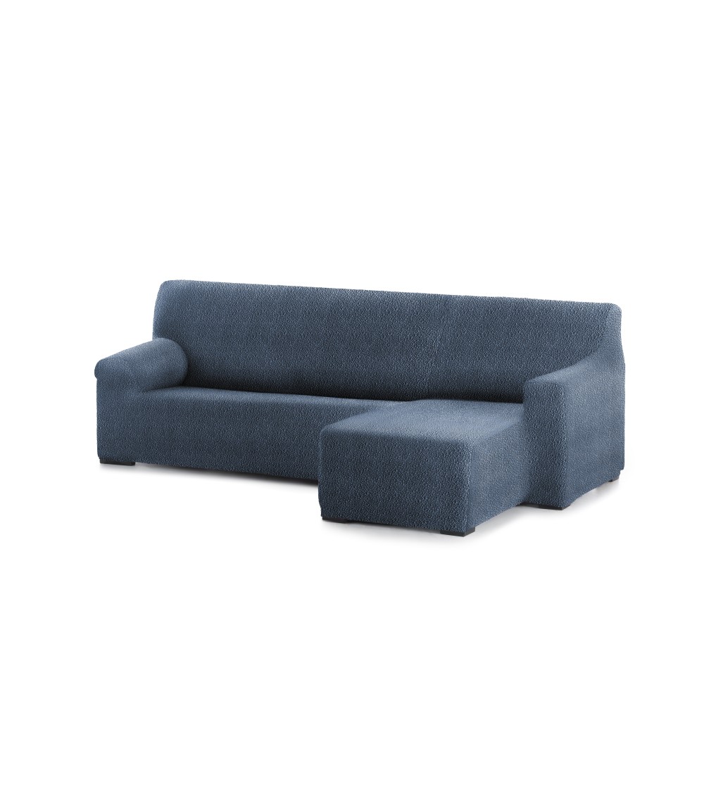 Housse de canapé en L droite pour bras court Premium Roc. Tissu multiélastique, housse adaptable à tous les types de canapés. Couleur bleu.