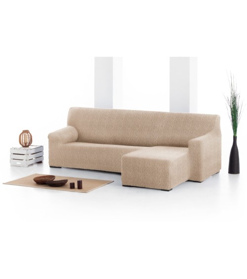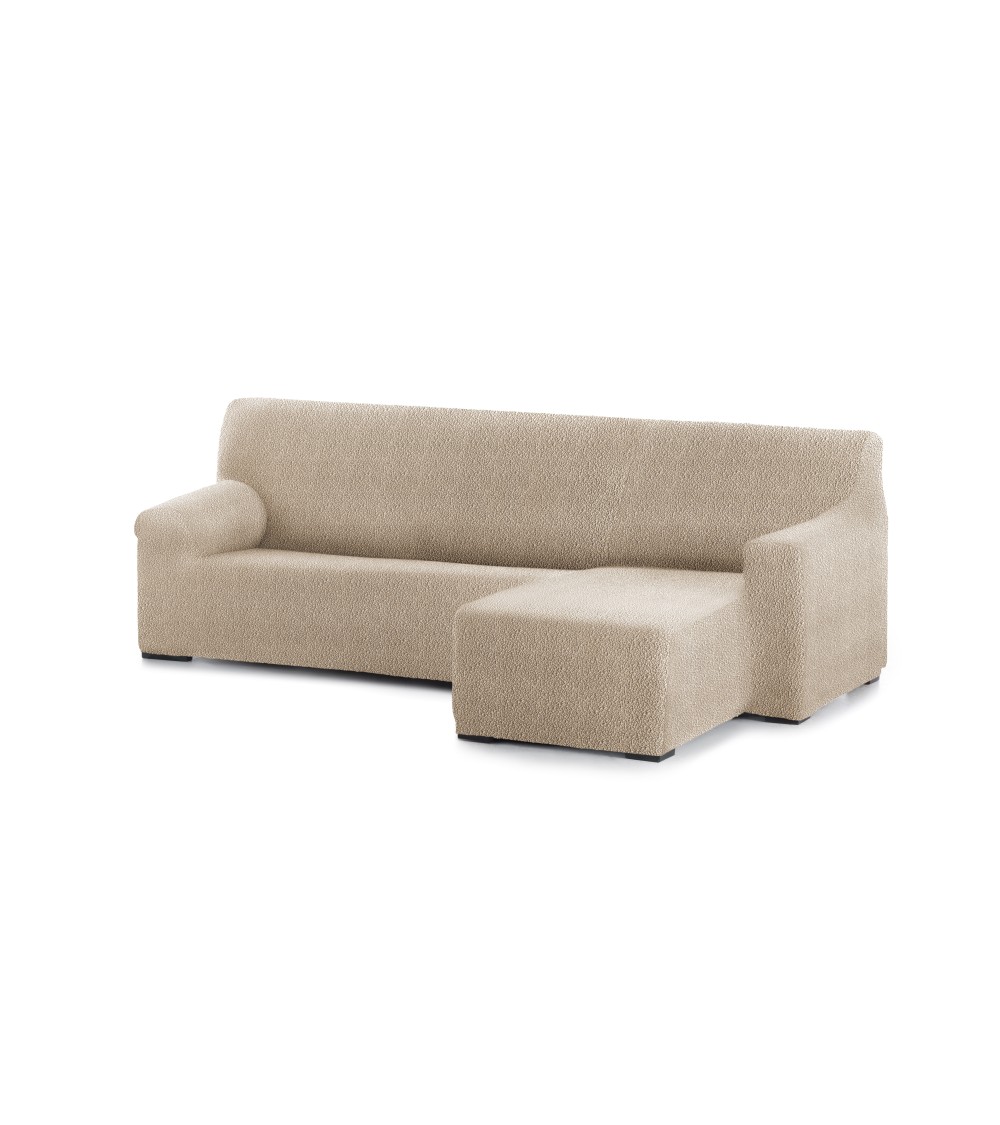 Housse de canapé en L droite pour bras court Premium Roc. Tissu multiélastique, housse adaptable à tous les types de canapés. Couleur beige.