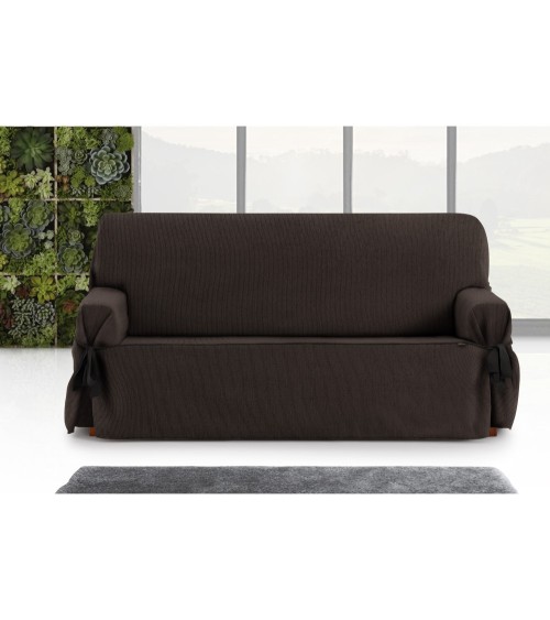 Housse de canapé 2 places avec nuds et lacets Mid. Couleur marron.