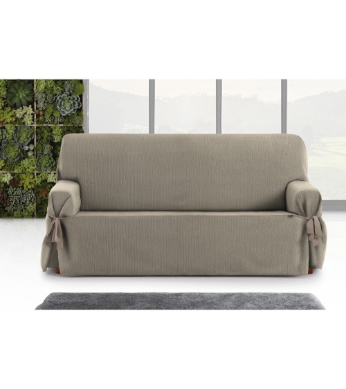 Housse de canapé 3 places nuds et lacets rubans Mid. Couleur taupe.