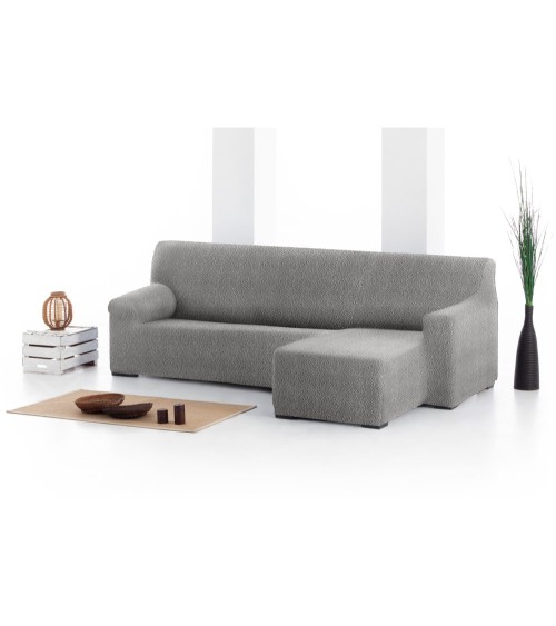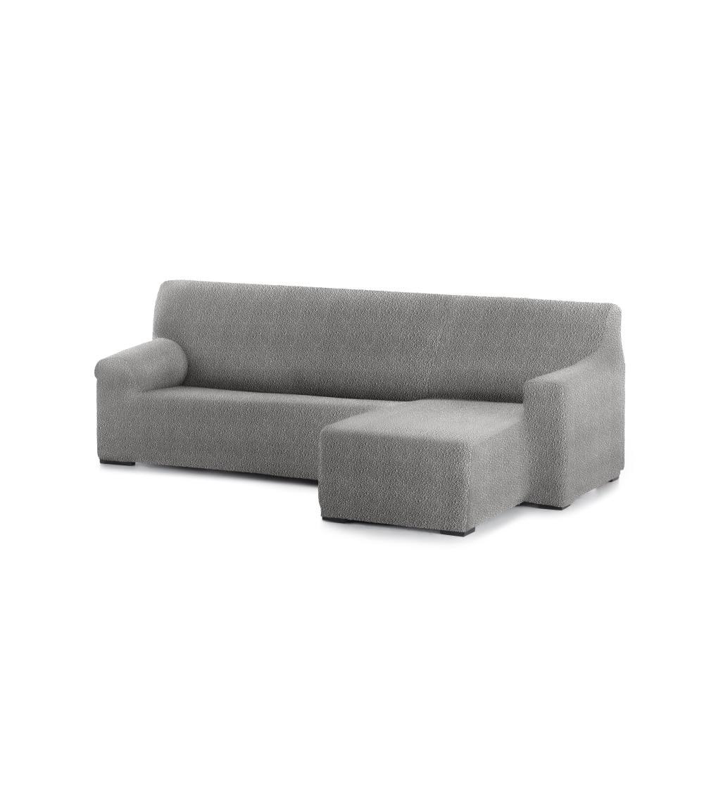 Housse de canapé en L droite pour bras court Premium Roc. Tissu multiélastique, housse adaptable à tous les types de canapés. Couleur gris clair.
