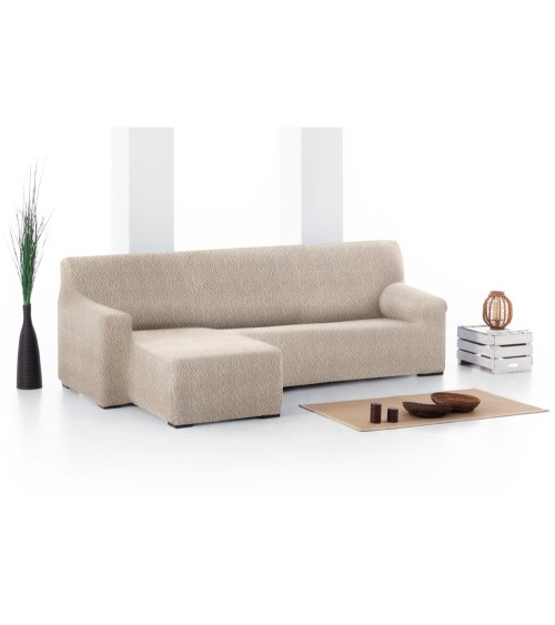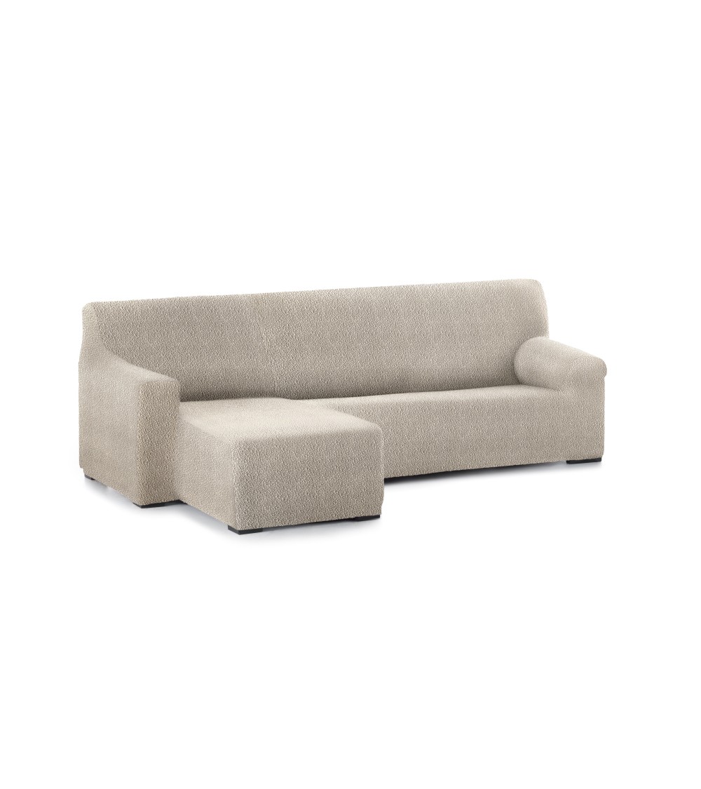 Housse de canapé en L gauche pour bras court Premium Roc. Tissu multiélastique, housse adaptable à tous les types de canapés. Couleur écru.
