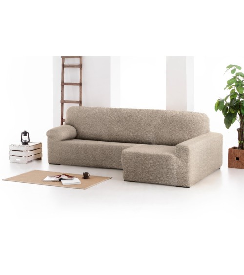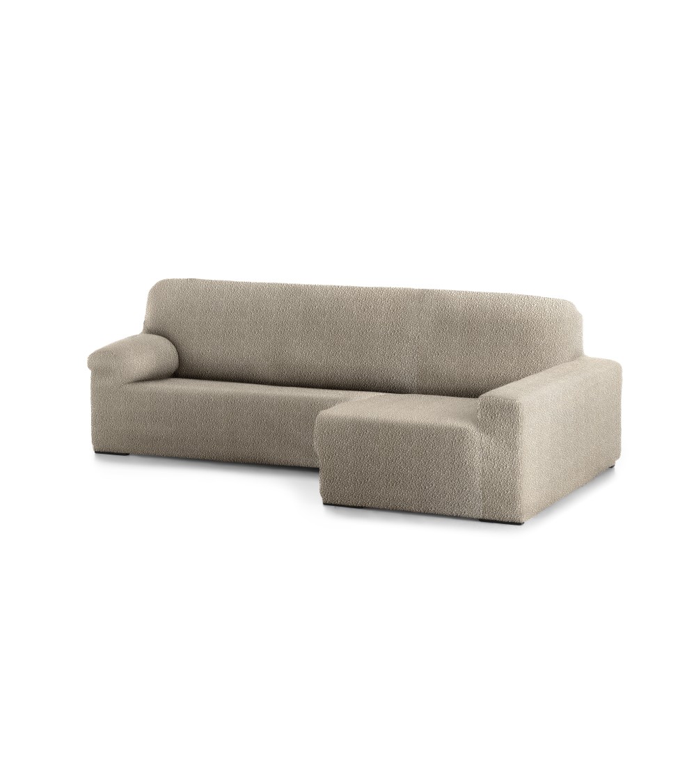 Housse de canapé en L droite Premium Roc. Tissu multiélastique, housse adaptable à tous les types de canapés. Couleur taupe.