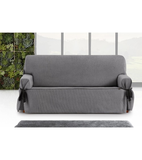 Housse de canapé 2 places avec nuds et lacets Mid. Couleur gris foncé.