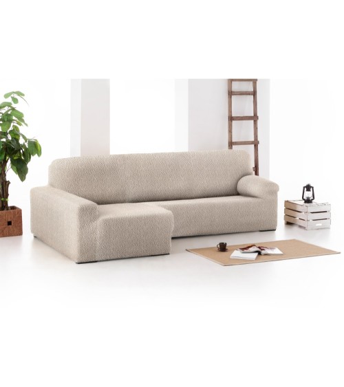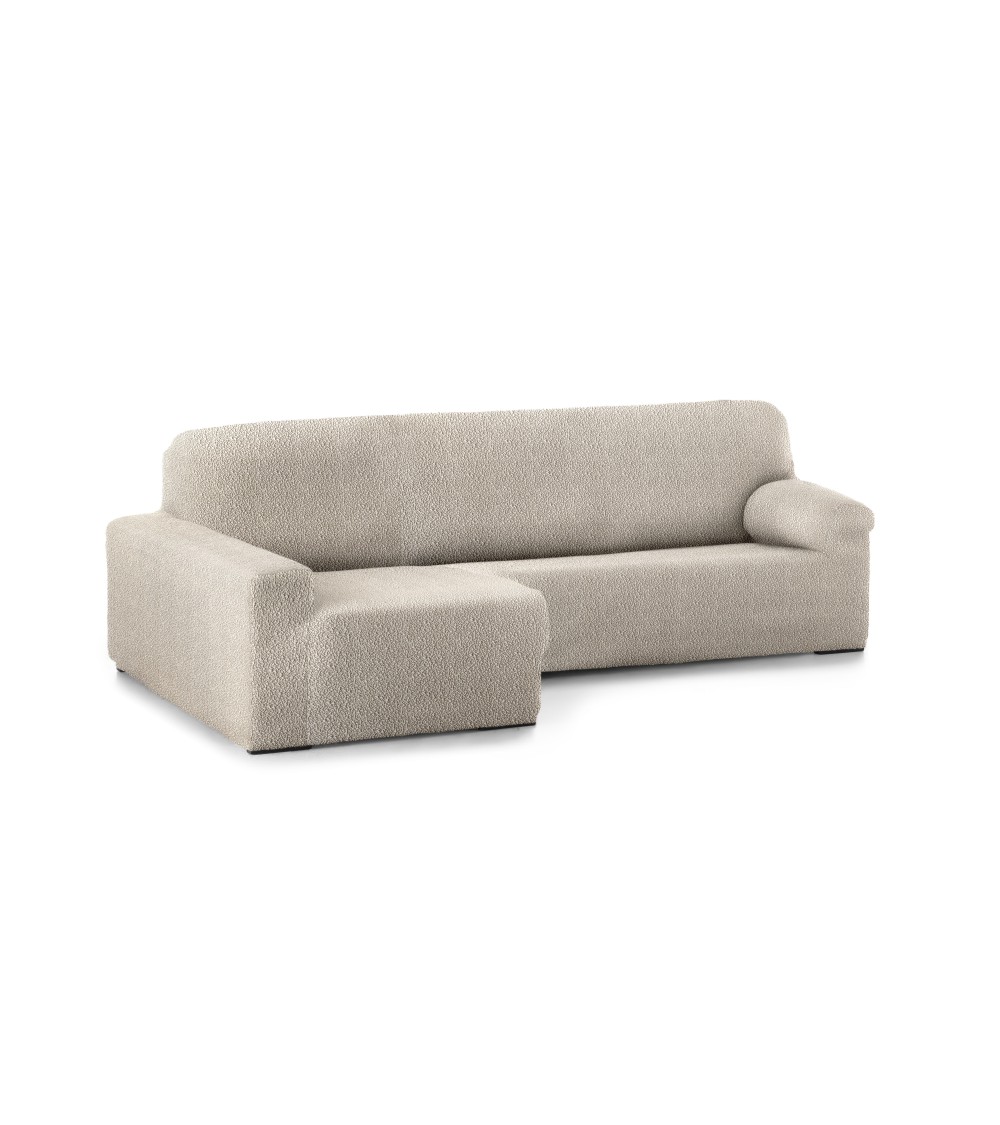 Housse de canapé en L gauche Premium Roc. Tissu multiélastique, housse adaptable à tous les types de canapés. Couleur écru.