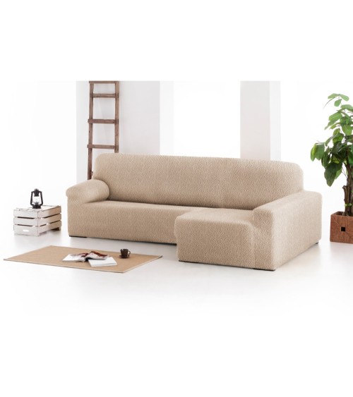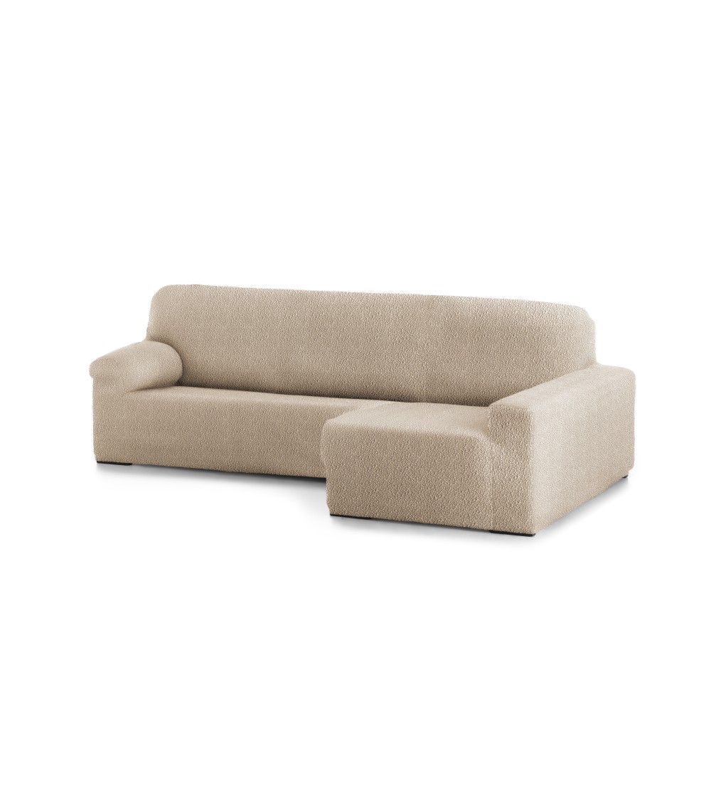 Housse de canapé en L droite Premium Roc. Tissu multiélastique, housse adaptable à tous les types de canapés. Couleur beige.