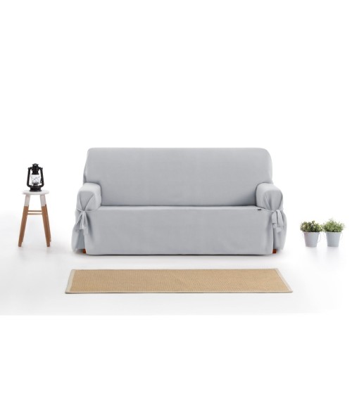 Housse de canapé 2 places avec nuds et lacets Levante. Couleur gris clair.