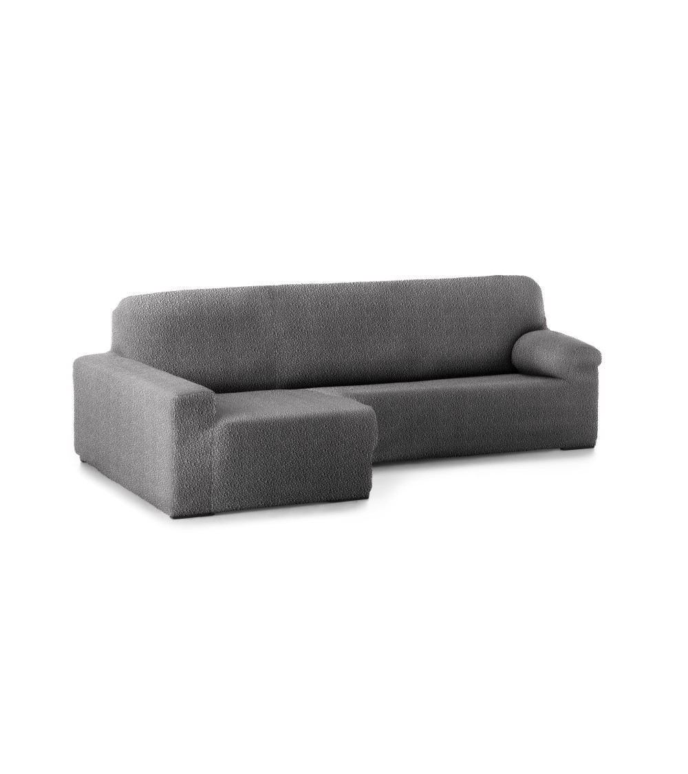 Housse de canapé en L gauche Premium Roc. Tissu multiélastique, housse adaptable à tous les types de canapés. Couleur gris foncé.