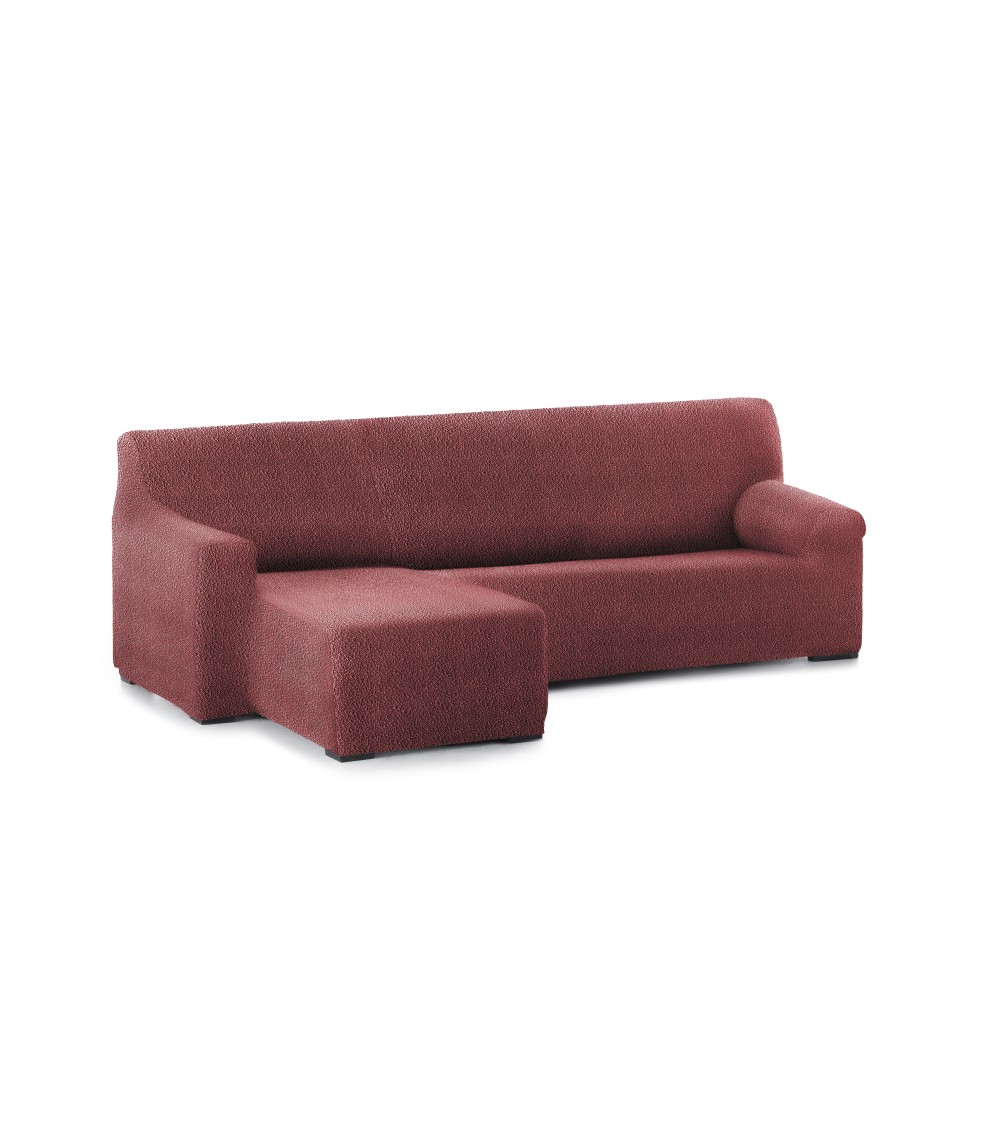 Housse de canapé en L gauche pour bras court Premium Roc. Tissu multiélastique, housse adaptable à tous les types de canapés. Couleur bordeaux.