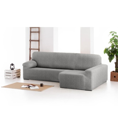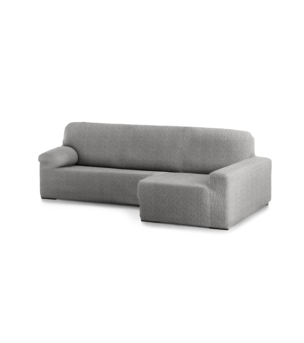Housse de canapé en L droite Premium Roc. Tissu multiélastique, housse adaptable à tous les types de canapés. Couleur gris clair.