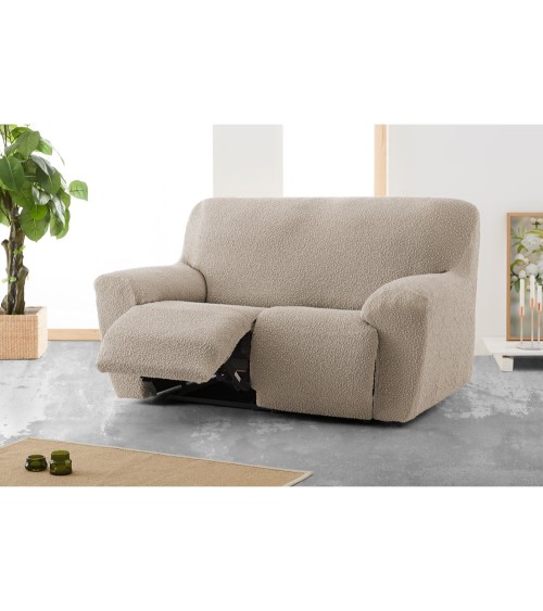Housse de fauteuil relax 2 places Premium Roc. Tissu multiélastique, housse adaptable à tous les types de canapés. Couleur taupe.