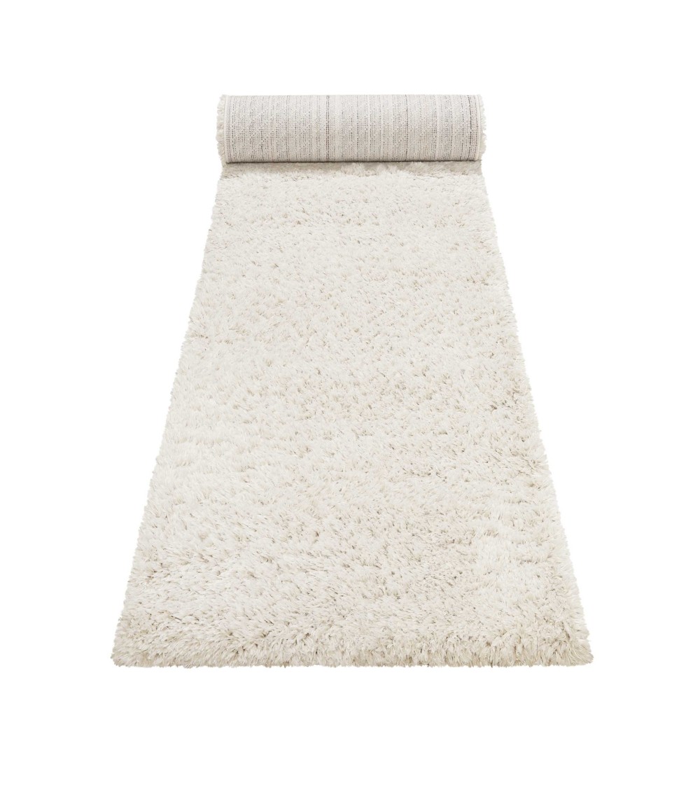 Tapis de couloir uni blanc beige 100% de matière recyclée 80x300