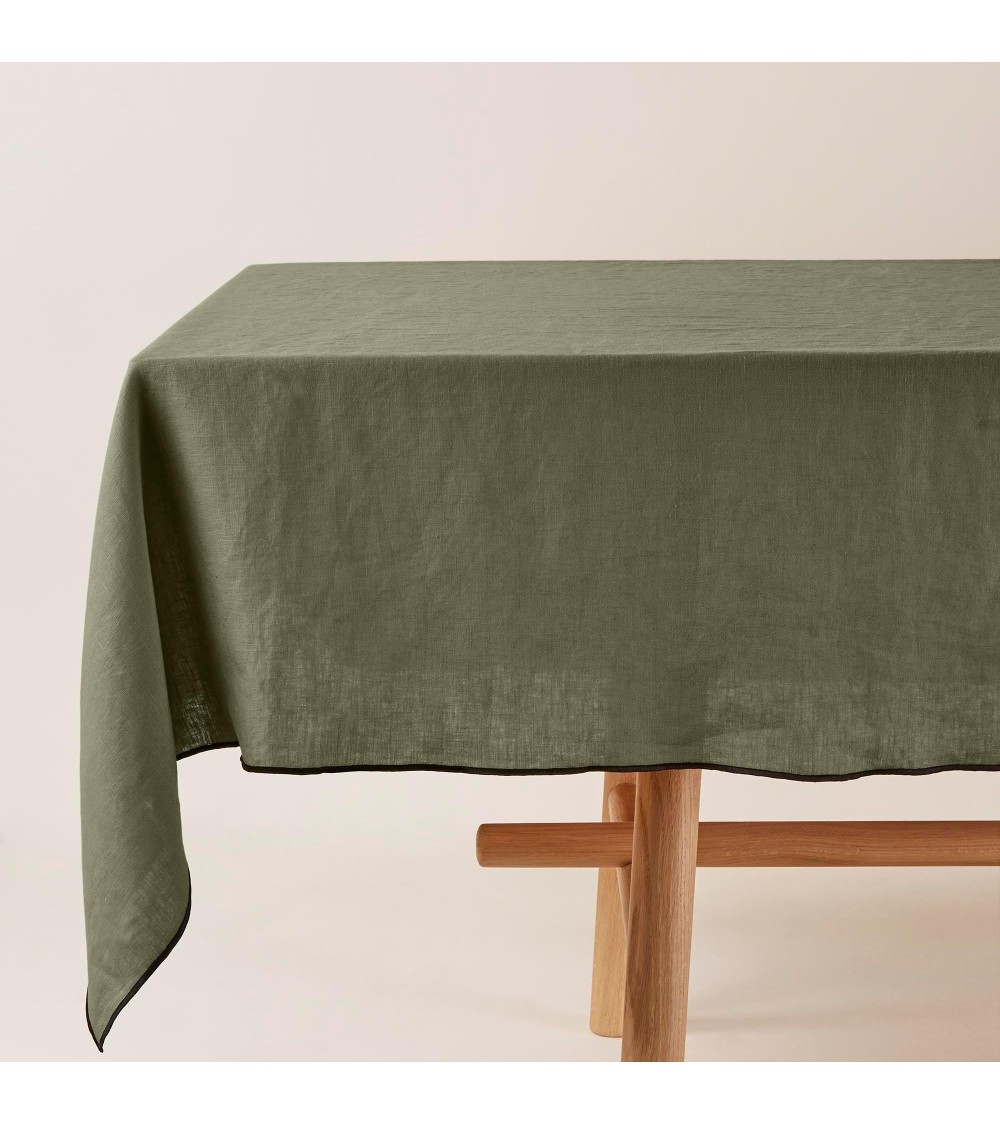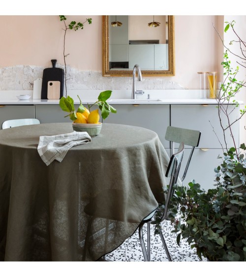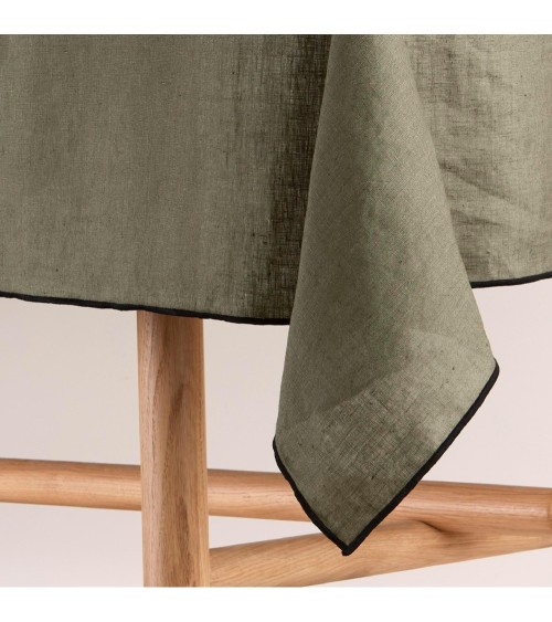 Nappe carrée 170x170 cm Kaki grisé et bourdon noir en Lin