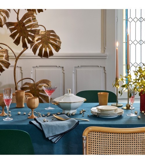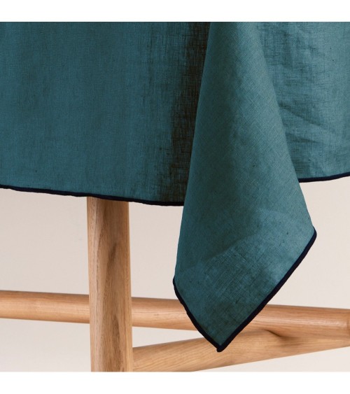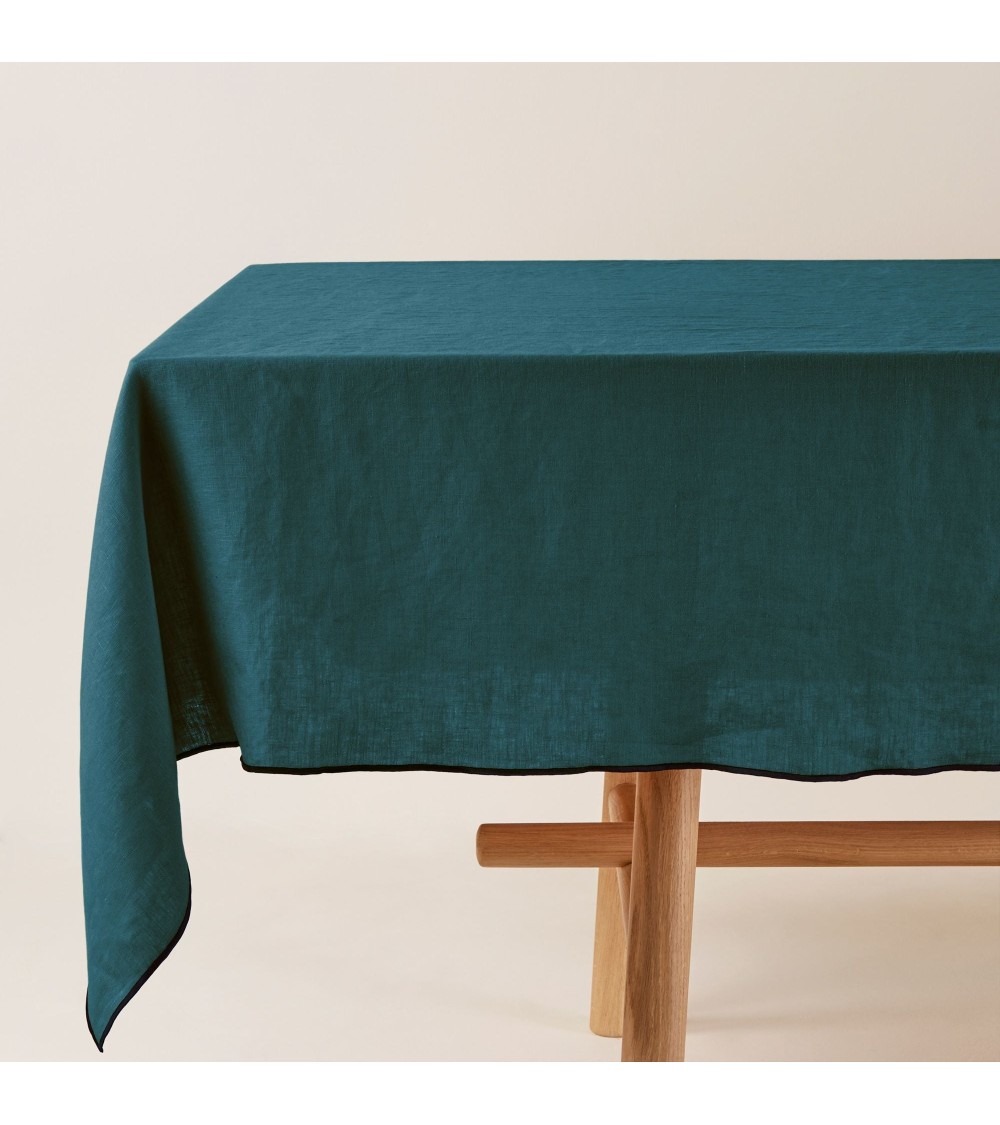 Nappe rectangulaire 170x250 cm Pétrole et bourdon noir en Lin