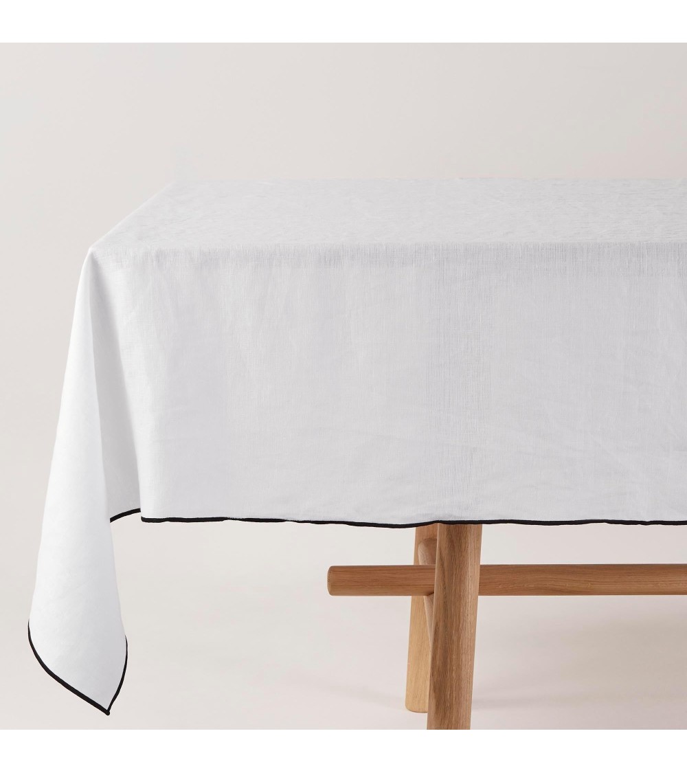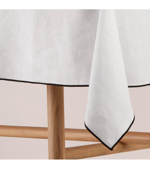 Nappe rectangulaire 170x320 cm Blanc pur et bourdon noir en Lin