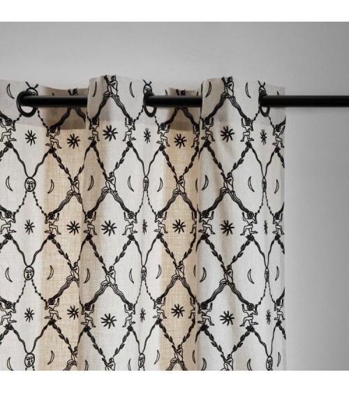 Rideau à oeillets noirs 140x280 cm Écru et noir