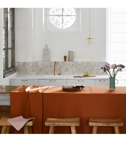 Nappe rectangulaire 170x320 cm Terracotta et bourdon noir en Lin
