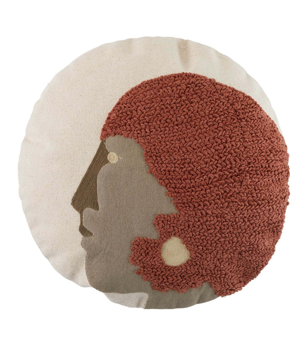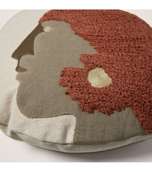 Le visage dune femme défenseuse de la Nature est brodé sur une housse de coussin tout en rondeur. La féminité, la délicatesse et la force se dégagent de ce visage. Les couleurs sourdes choisies pour dessiner le visage sont directement inspirées de la terre et de la végétation. La housse se ferme à laide de deux jolis boutons en bois de saule. À associer avec lenveloppe de coussin ronde Moonrise pour une harmonie parfaite sur le canapé.