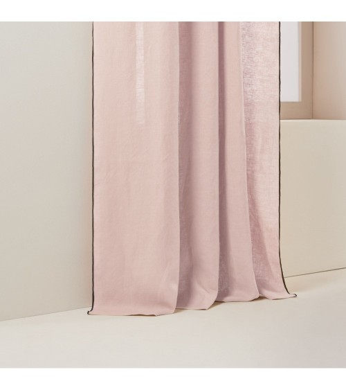 Rideau à galon fronceur 144x280 cm Rose poudré et bourdon noir en Lin