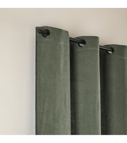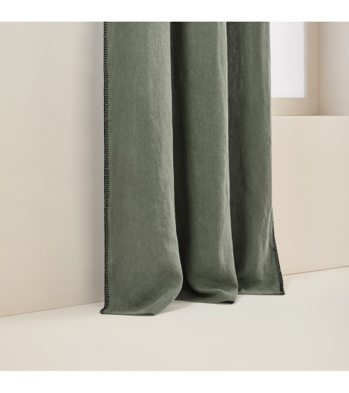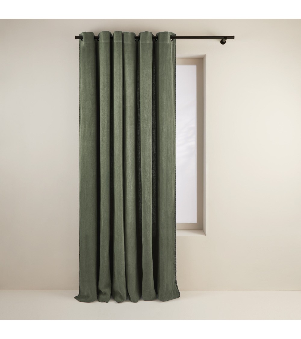 Rideau à oeillets noirs 135x350 cm Kaki grisé et feston noir en Lin