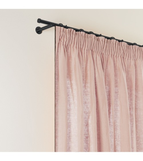 Rideau à galon fronceur 135x350 cm Rose poudré et bourdon noir en Lin